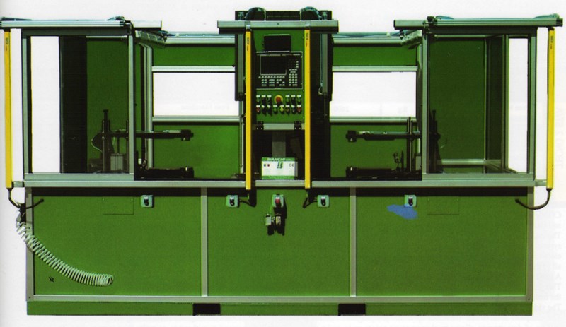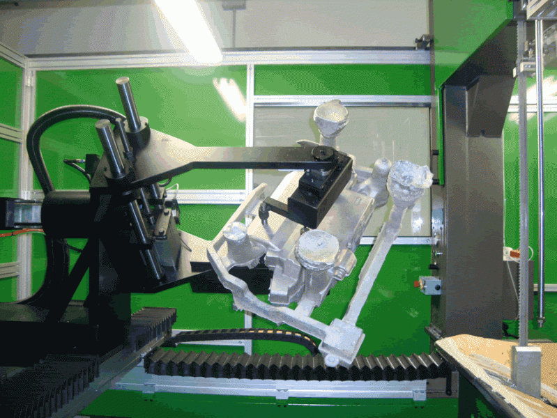 Maquina para el corte velas alimentadoras en el proceso de fundición en coquilla, Fabricación Italiana, a doble puesto, sierra vertical, posicionamiento programable desde diferentes ejes, recto, curvo por medio de CNC, prensa pieza hidráulico, de fácil configuración. Maquina NUEVA para importación directa. Ref.- UM/Italia 635