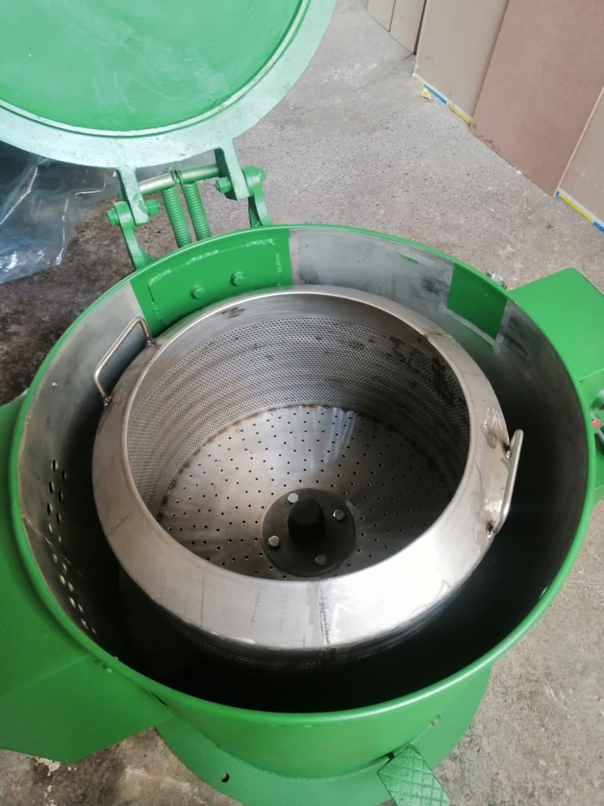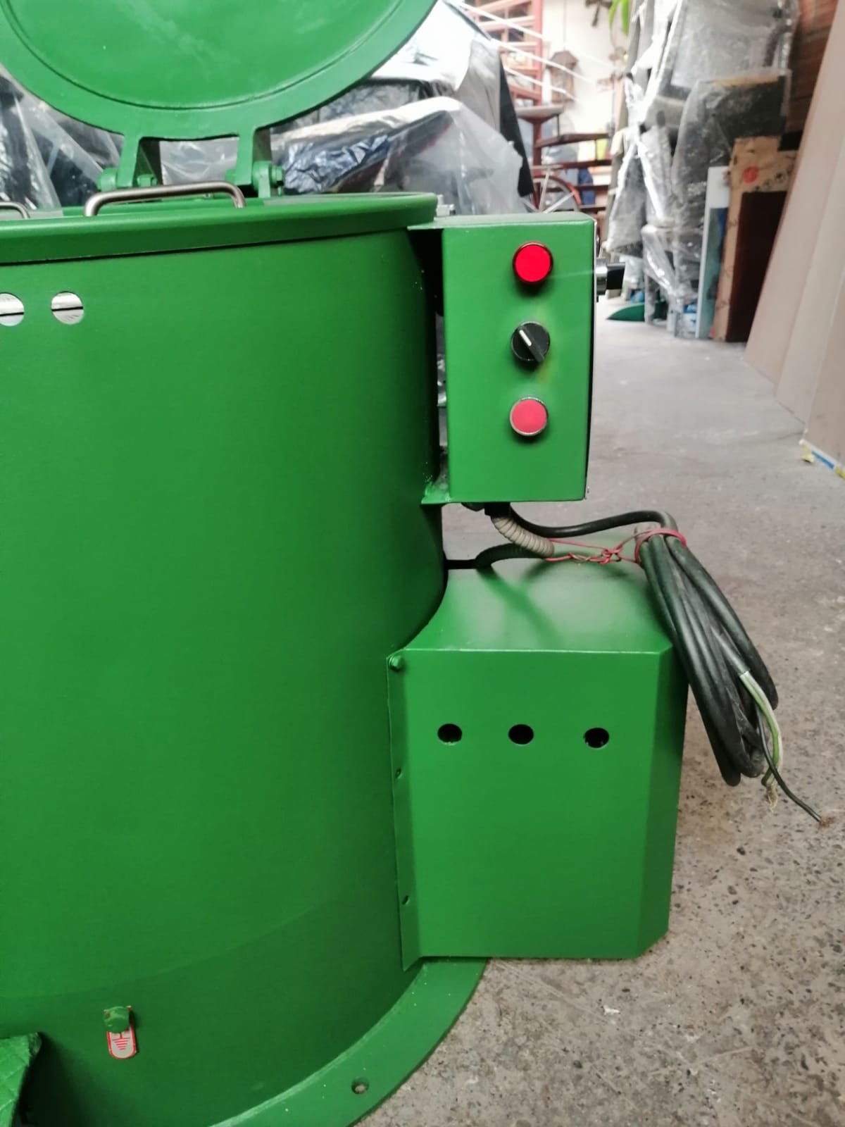 Máquina para la recuperación de líquidos con secamiento, fabricación Nacional, y las siguientes características: Medidas de la máquina 800mm en diámetro por 700mm en altura, medias de la olla construida en acero inox diámetro 400mm por 290 mm de altura, 600rpm/1o , Temperatura en kw 3, Motor 3 hp 220/60 hz.. Tiene seguridad en la tapa por medio de Micro y temporizador para los tiempos de centrifugado. Ref.: UM/O 301