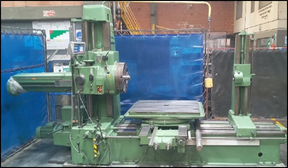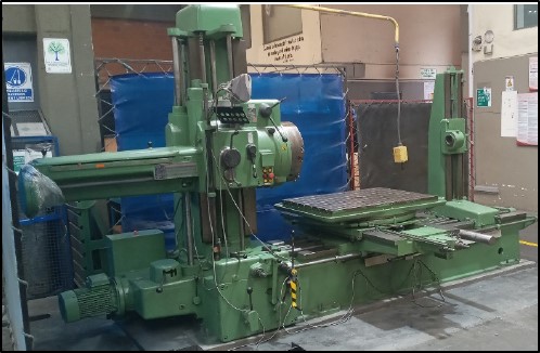 Alesadsora marca WMW, fabricación alemana, con husillo de 80mm, área de mesa 110010900mm, salida de la caña 600mm., recorrido husillo en vertical 1000mm, recorrido husillo en transversal 1000mm, distancia máxima husillo a contrapunta, 2000mm., giro aromático 360°,peso máximo admitido sobre la mesa 2,5 ton. Ref.- UM/ 356