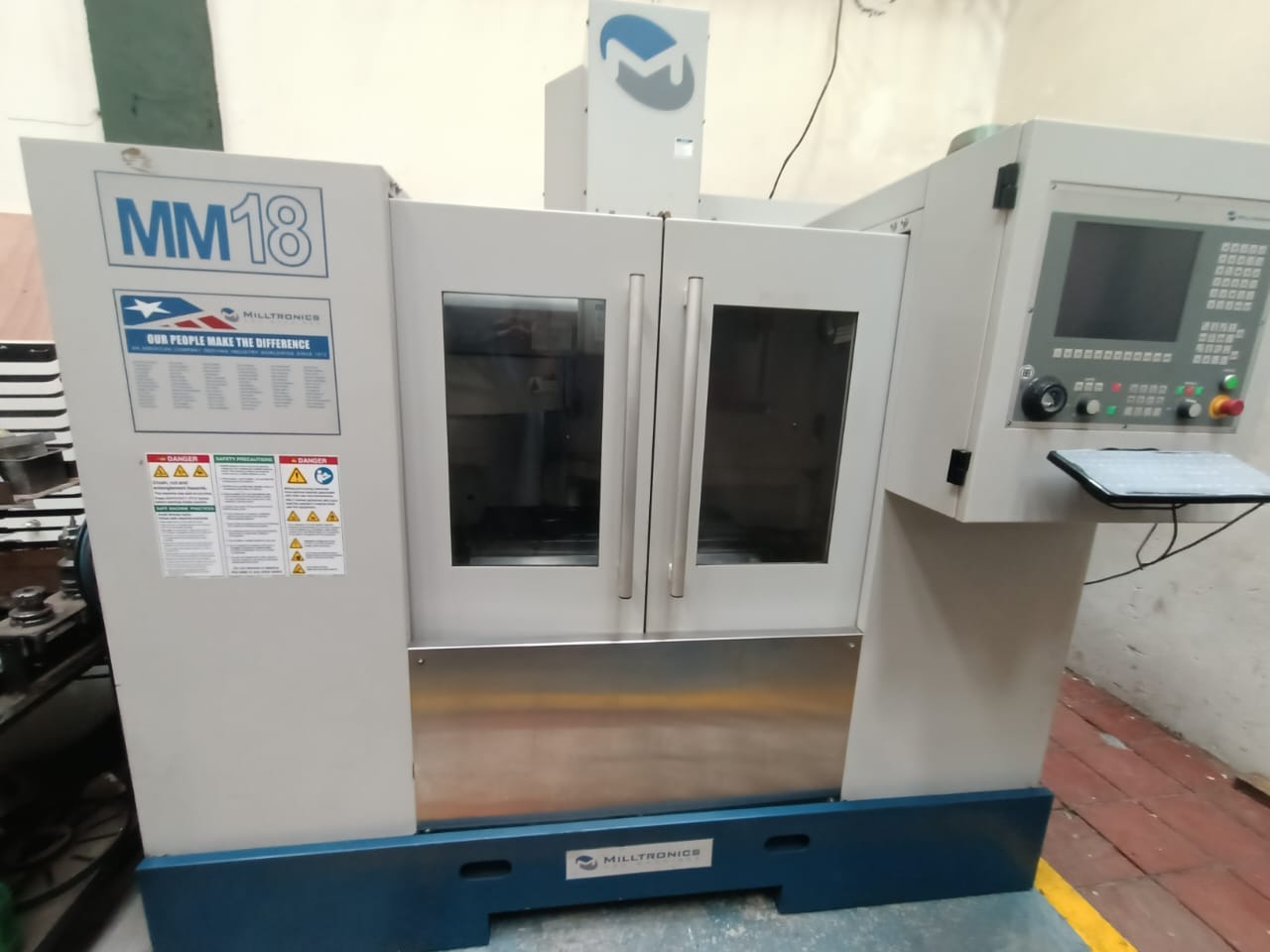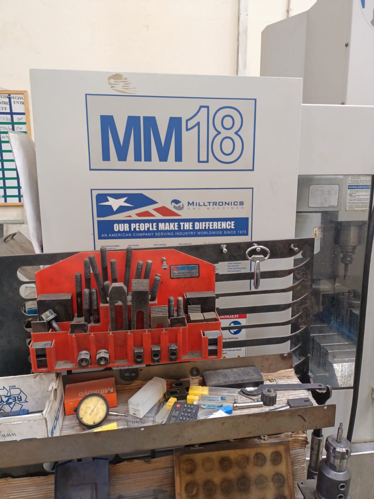 Centro de Mecanizado marca Miltronic , Modelo MM 18, fabricación U.S.A., Área de Mesa 890x405mm., con 18 herramientas en carrusel, control Miltronic, con prensa, Ref.- UM/O 278