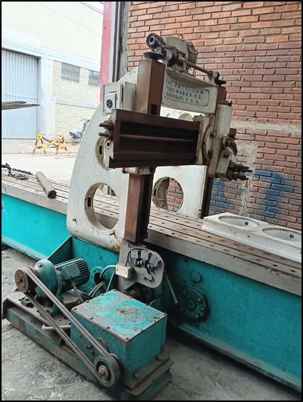Cepillo puente de fabricación norteamericana,  4 mts de recorrido de mesa, 750mm de ancho, 750mm de altura, funcionamiento mecánico.   A PEDIDO SE ENTREGA CON CAVEZAL FRESADOR, Ref.- UM/O 185