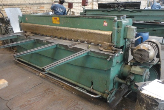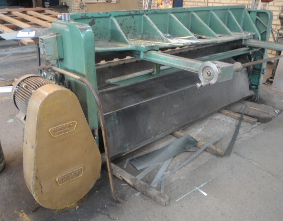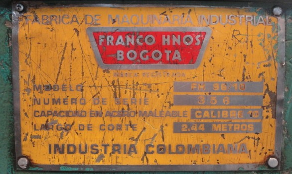 Cizalla Marca Franco, fabricación nacional, funcionamiento mecánico, 2,44 largo de cuchilla para calibre 10 (3,41 mm), con brazos p delanteros, topes posteriores manuales Ref.: UM/O 369