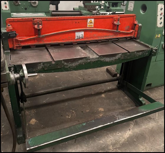 Cizalla para lamina, Marca FRANCO HNS., fabricación Nacional, mando de pie, mecánica, no motorizada, largo de corte 1200mm, calibre 18.  Ref.:  UM/O 512