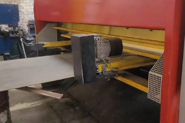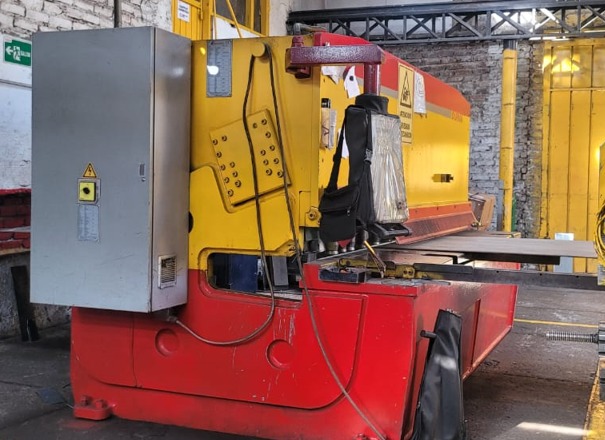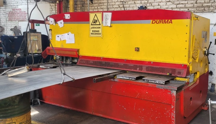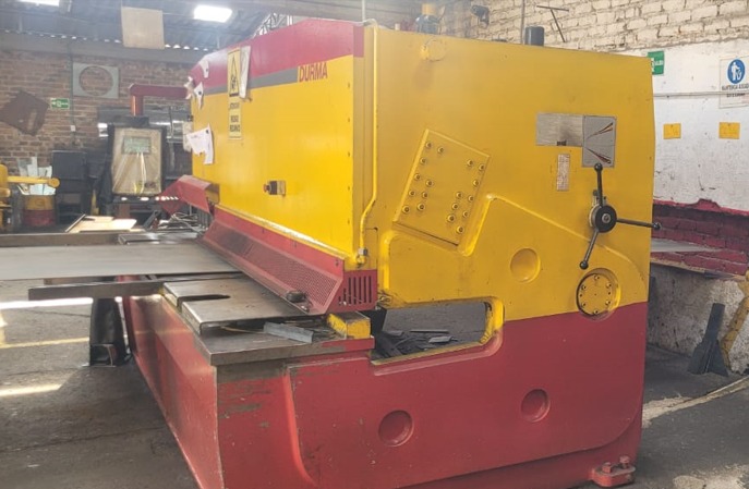 Cizalla para el corte de lámina Marca DIRMA, fabricación Turca, con capacidad de corte hasta 13mm en largo de cuchillas 3 Mts, funcionamiento hidráulico, mando pie, control NC, topes posteriores motorizados. Ref.- UM/O 383