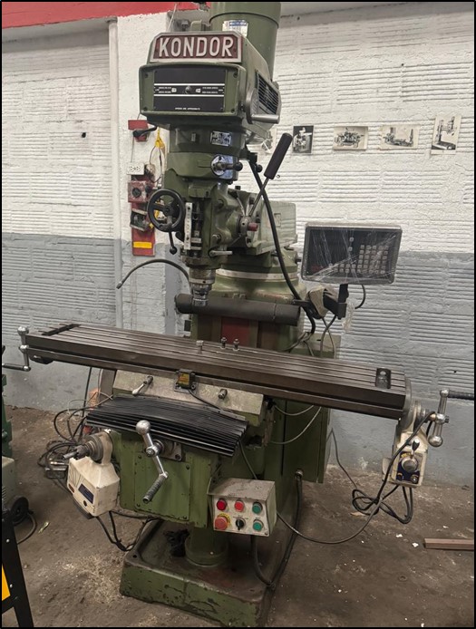 Fresadora a Torreta Marca KONDOR,  fabricación Taiwan, No. 2, área de mesa 1270x300mm.,   completa de boquillas, prensa, visualizador en tres ejes, automáticos en ejes X-Y, cambio de velocidades por platos, bomba refrigeración.  Ref.:  UM/O 500