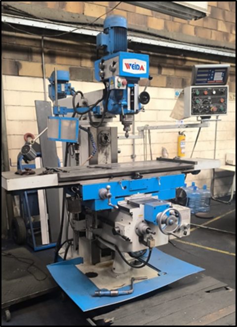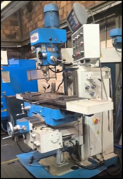 Fresadora a Torreta combinada Marca WEDIA, con husillo horizontal, mesa de 1400mmx 300mm., con visualizador de cuota, automáticos en los tres ejes, Prensa, Cabezal mortajador.  Ref.:  UM/O  475
