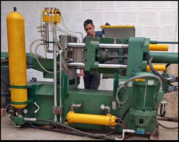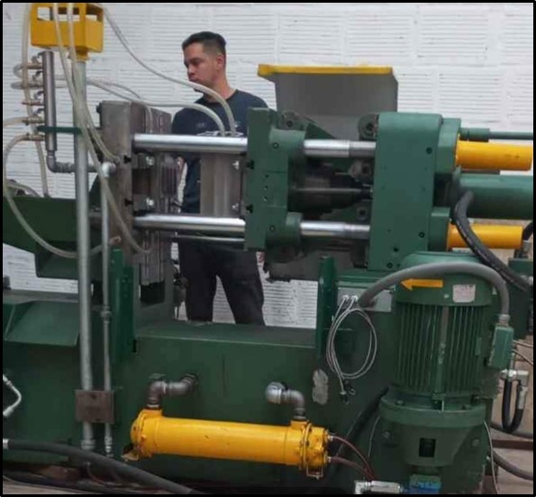 Inyectora para metales Marca Ader, fabricación española, 80 ton., cámara fría, distancia entre columnas 320mm, altura de molde 400mm., inyección máxima 120 grs., máquina remanufacturada.  Ref.: UM/O 523