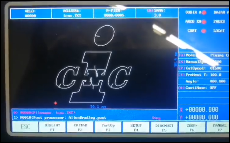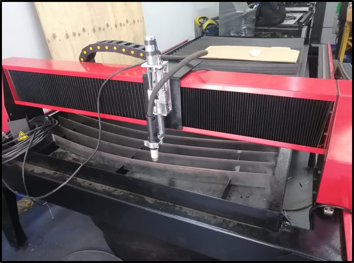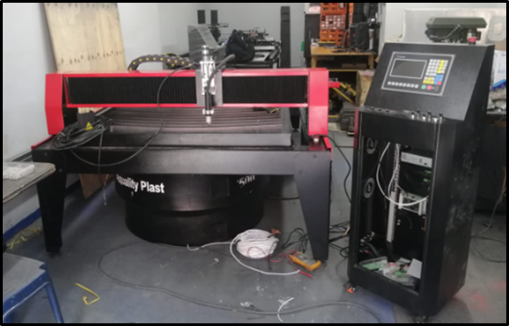Mesa de corte por Plasma a CNC, fabricación China, con capacidad de corte en espesor hasta 25mm, y área de trabajo 1,3 x 3 mts, tipo puente, con control y pantalla a color, sistema programable con memorias, completo de fuente plasma. UM/O 430