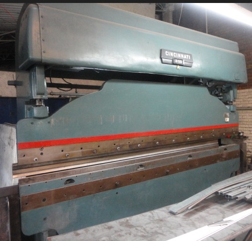 Plegadora Marca CINCINNATTI, fabricación norteamericana, 60 ton de fuerza y 3,6 mts. largo de Punzón/Dado, embrague mecánico, no tiene topes posteriores, Motor de 5 H.P., Ref-; UM/O 391