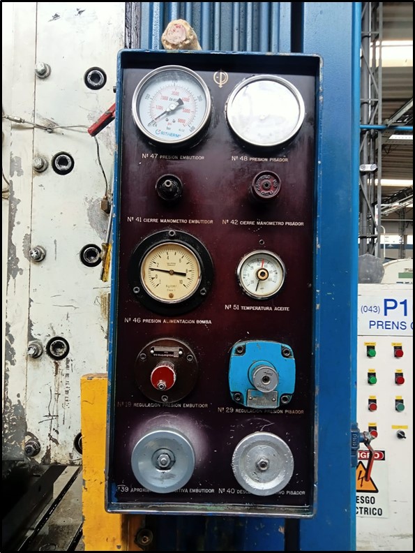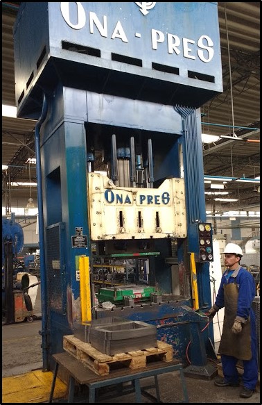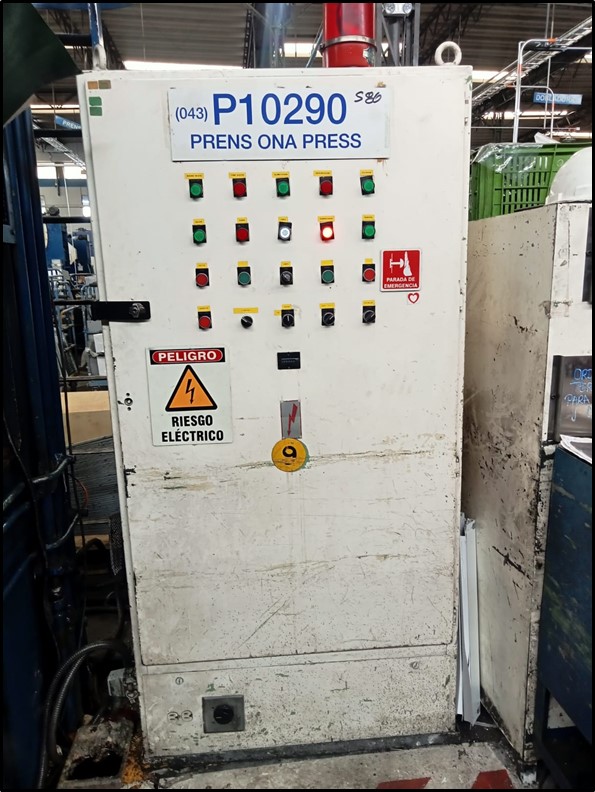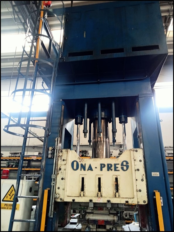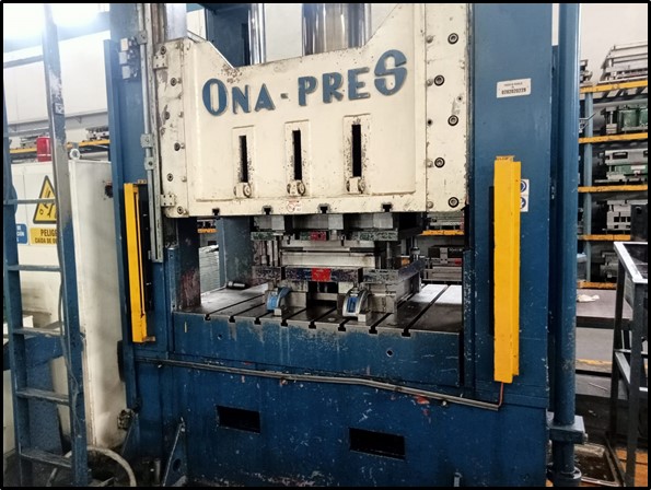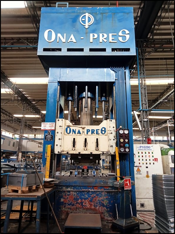 Prensa Troqueladora Marca ONA PRES, fabricación española, Modelo BBD- 60-SER-N de 300 ton de fuerza principal y 120 ton en cojín, Área de mesa 1500x1200mm, recorrido máximo de pistón 800mm., Motor de 84 CV, completa de cuadro de control, mando individual a dos manos o solo pie, Ref.; UM/O 436