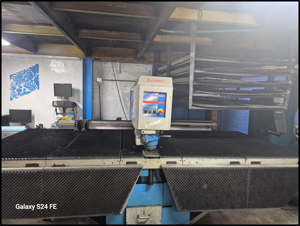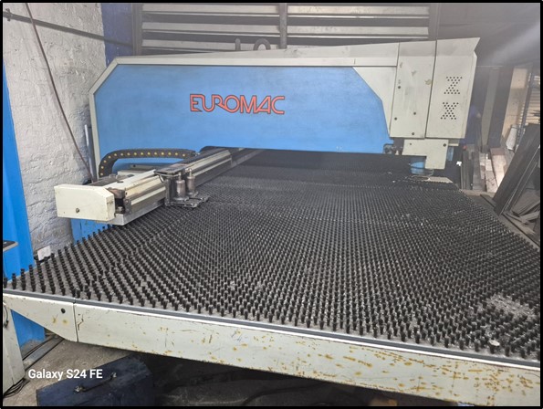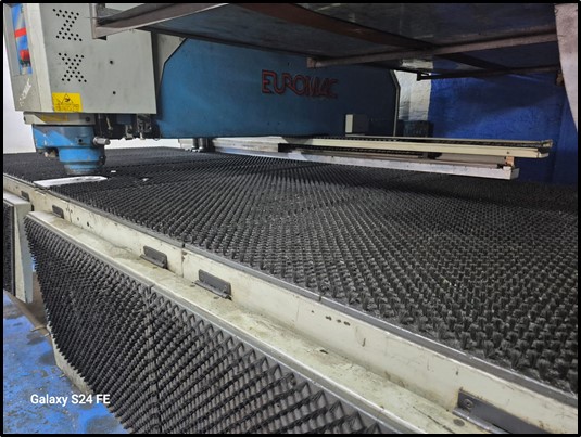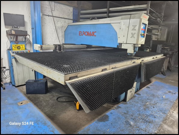 Punzonadora Marca EUROMAC, a CNC, Fabricación Italiana, Usada, 30 ton, área de trabajo 1250X3000 mm., con reposicionamiento, sistema de cargue punzones entre 2 a 6 punzones, Controla computador,  Año 2002. Ref.-UM/O 472