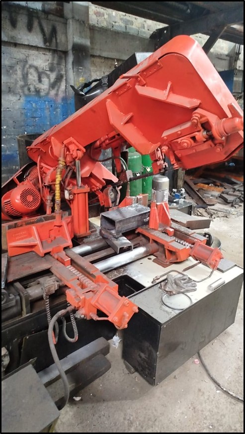Sierra Sin Fin, fabricación China, con apertura de mordazas hasta 380mm., cierre mordazas automático con avance de material, funcionamiento hidráulico, completa de bomba refrigeración, Motor Hidráulico de 2 Kw, motor sierra 4,5 Kw. Ref. UM/O 462