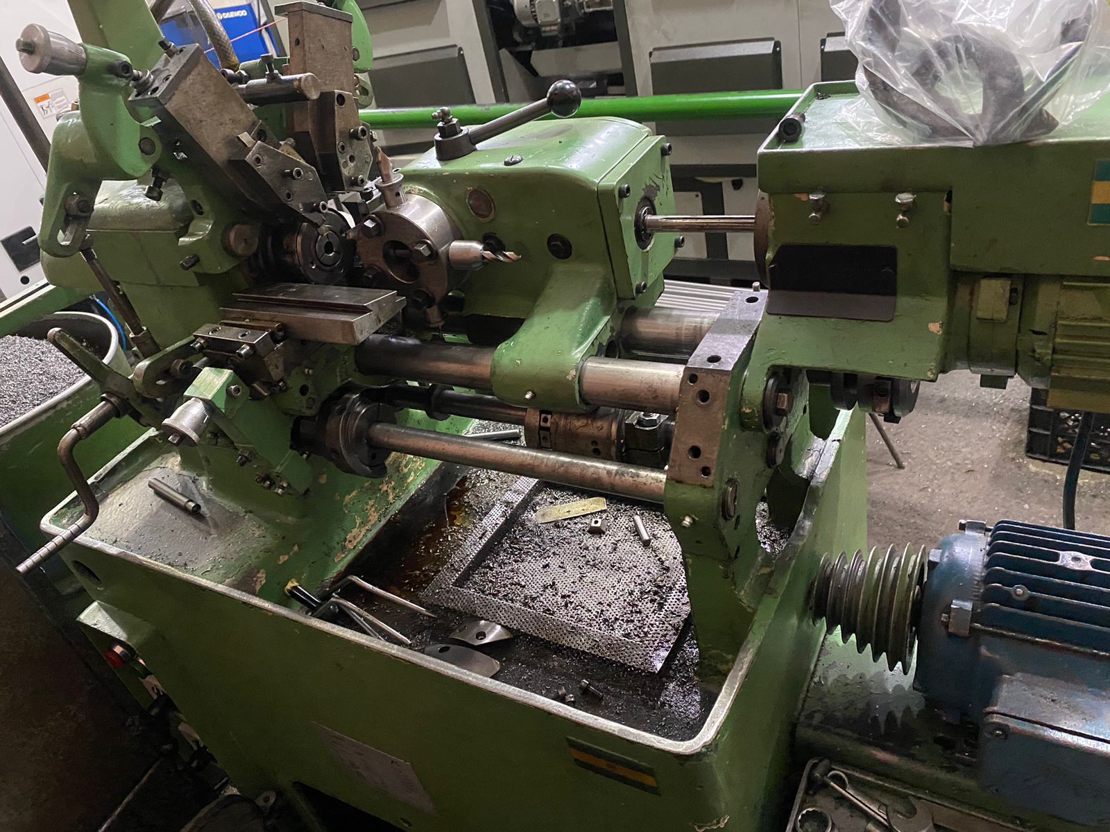 Torno Automático marca Camporesi, fabricación Argentina, Mod. HS 25, capacidad de husillo hasta 25mm., con torreta revolver a 6 posiciones, bi-husillo, boquillas, accesorios, levas, piñones, alimentador completo. Ref.- UM/O 328