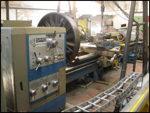 Torno paralelo marca SARO, fabricación Rumana, volteo 800mm sobre bancada, 3000mm entre puntos, completo copas tres y cuatro, lunetas, bomba refrigeración. Ref.: UM/O 362
