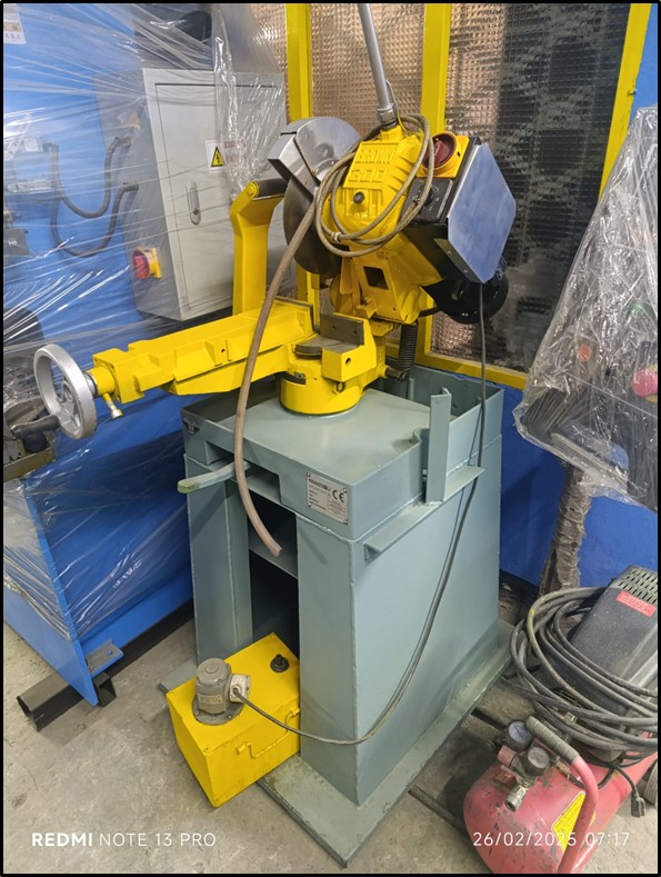 Tronzadora para corte de tubos, con disco de 300mm tipo HSS, completa de banco de trabajo, prensa rápida, posibilidad de corte en angulación,  brazo sostenedor de tubo, bomba refrigeración. Ref.: UM/O 426