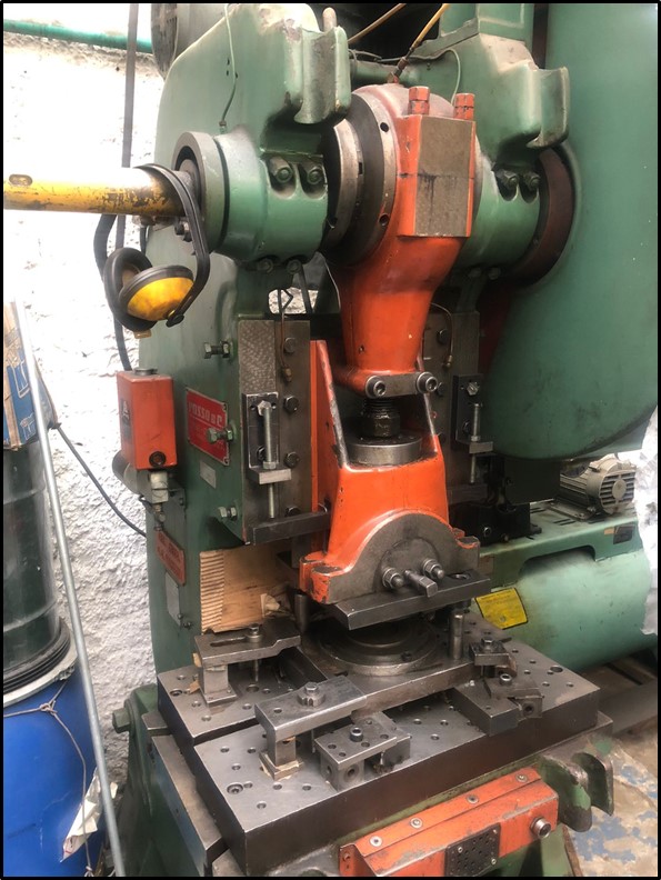 Troqueladora para lámina, marca RAMBAUDI, fabricación Italiana, 40 ton de capacidad, carrera viable, embrague neumático, área de mesa 700x500mm., mando de pie y a dos manos, con lubricación manual centralizada, Ref.: UM/O 496